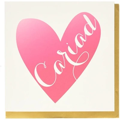 DIMENSIONS: 150x150mm CAPTION: Cariad ENGLISH TRANSLATION: Love BLANK INSIDE: Space inside for your own message MADE IN THE UK: Designed, printed and finished in the UK HIGH-QUALITY: Printed on top quality heavy 350gsm card stock, with envelope included SUSTAINABLE: Comes wrapped in Compostable bag or with a card catch label. Both the greetings card & envelope are sustainably sourced and recyclable STANDARD LETTER SIZE: Can be sent with Royal Mail standard letter stamps