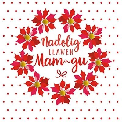 DIMENSIONS: 150x150mm CAPTION: Nadolig Llawen Mam-gu x ENGLISH TRANSLATION: Happy Christmas, grandma EMBELLISHMENT: Colourful Pompoms BLANK INSIDE: Space inside for your own message MADE IN THE UK: Designed, printed and finished in the UK HIGH-QUALITY: Printed on top quality heavy 350gsm card stock, with envelope included SUSTAINABLE: Comes wrapped in Compostable bag or with a card catch label. Both the greetings card & envelope are sustainably sourced and recyclable STANDARD LETTER SIZE: Can be sent with Royal Mail standard letter stamps