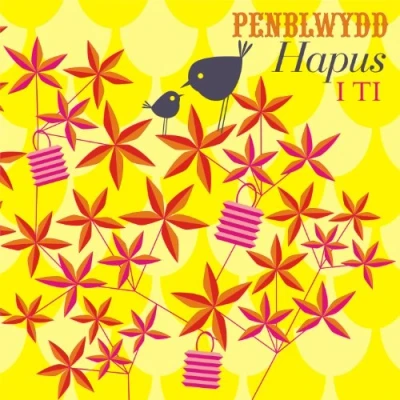 Claire Giles Greeting Cards, Welsh Happy Birthday Card, Penblwydd Hapus, Birds in Bush Design Language Card