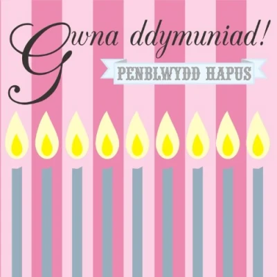 Claire Giles Greeting Cards, Welsh Happy Birthday Card, Penblwydd Hapus, Candles Design "Make a Wish!"