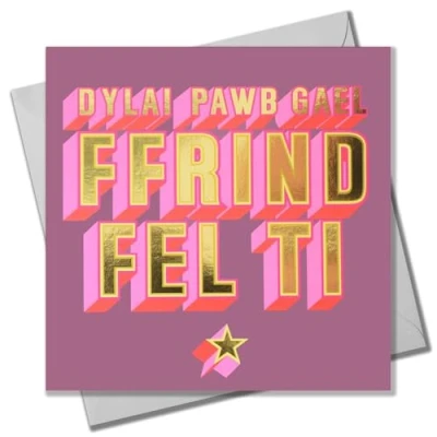 Claire Giles Greeting Cards, Welsh Happy Birthday Friend Card, Penblwydd Hapus Ffrind Fel Ti and gold foil text