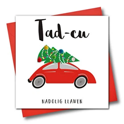 DIMENSIONS: 150x150mm CAPTION: Tad-cu, Nadolig Llawen ENGLISH TRANSLATION: Happy Christmas Grandpa EMBELLISHMENT: Colourful Pompoms BLANK INSIDE: Space inside for your own message MADE IN THE UK: Designed, printed and finished in the UK HIGH-QUALITY: Printed on top quality heavy 350gsm card stock, with envelope included SUSTAINABLE: Comes wrapped in Compostable bag or with a card catch label. Both the greetings card & envelope are sustainably sourced and recyclable STANDARD LETTER SIZE: Can be sent with Royal Mail standard letter stamps