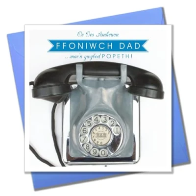 Claire Giles Greeting Cards, Welsh Happy Father's Day Card, Sul y Tadau Hapus, "Call Dad" design Card