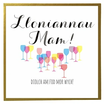 DIMENSIONS: 150x150mm CAPTION: lechyd da Mam! Dialch am fod mor wych! BLANK INSIDE: Space inside for your own message MADE IN THE UK: Designed, printed and finished in the UK HIGH-QUALITY: Printed on top quality heavy 350gsm card stock, with envelope included SUSTAINABLE: Comes wrapped in Compostable bag or with a card catch label. Both the greetings card & envelope are sustainably sourced and recyclable STANDARD LETTER SIZE: Can be sent with Royal Mail standard letter stamps