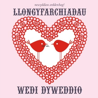 Claire Giles Greeting Cards, Welsh Wedding Engagement Congratulations Card, Heart and Love Birds Design Card
