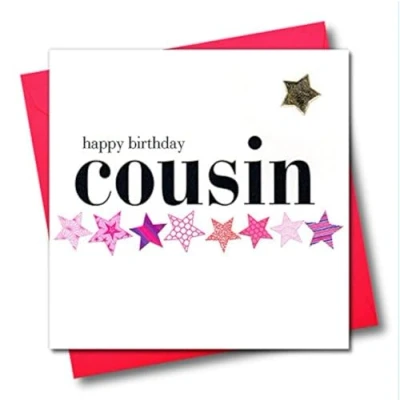 Claire Giles Hearts and Stars Happy Birthday Cousin Card Pink,blackpinkgreypeachred