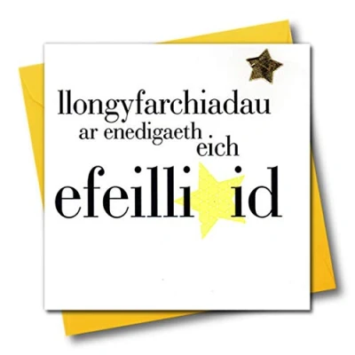 Claire Giles Hearts and Stars Welsh Twins Birthday/Efeilliaid Happy Birthday Card