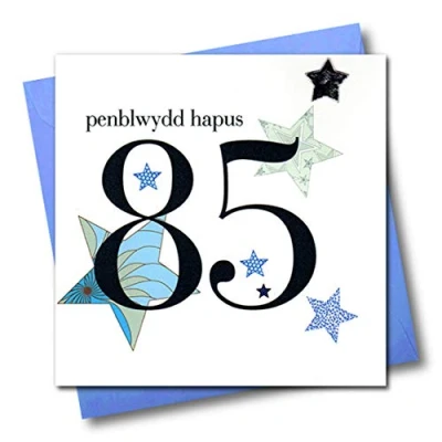 Claire Giles Hearts and Stars Welsh Penblwydd Hapus Blue Happy Birthday Card