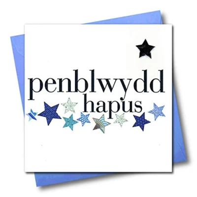 Claire Giles Hearts and Stars Welsh Penblwydd Hapus Blue Little Happy Birthday Card