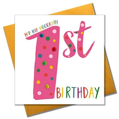 DIMENSIONS: 150x150mm CAPTION: Hip Hip Hooray!!! 1st Birthday EMBELLISHMENT: Colourful Pompoms BLANK INSIDE: Space inside for your own message MADE IN THE UK: Designed, printed and finished in the UK HIGH-QUALITY: Printed on top quality heavy 350gsm card stock, with envelope included SUSTAINABLE: Comes wrapped in Compostable bag or with a card catch label. Both the greetings card & envelope are sustainably sourced and recyclable STANDARD LETTER SIZE: Can be sent with Royal Mail standard letter stamps