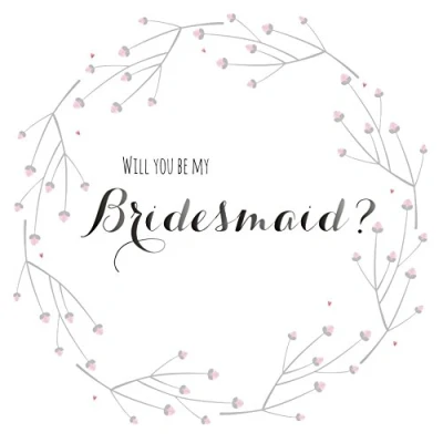DIMENSIONS: 150x150mm CAPTION: Will you be my Bridesmaid? BLANK INSIDE: Space inside for your own message MADE IN THE UK: Designed, printed and finished in the UK HIGH-QUALITY: Printed on top quality heavy 350gsm card stock, with envelope included SUSTAINABLE: Comes wrapped in Compostable bag or with a card catch label. Both the greetings card & envelope are sustainably sourced and recyclable STANDARD LETTER SIZE: Can be sent with Royal Mail standard letter stamps