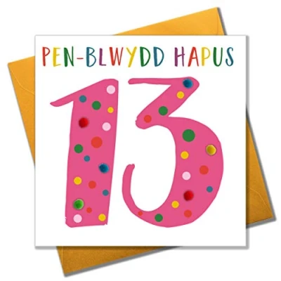 Claire Giles WPOM113P "Age 13 Pink, Greeting Card Embellished with Pompoms"