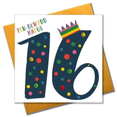 Amazon Wording on Front, Pen-Blwydd Hapus, 16 Wording translation, Happy Birthday 16 Blank inside for your own message Comes cello wrapped in Compostable bag with a vibrant yellow envelope Printed and hand finished in the U.K with beautiful colourful pompom embellishments.