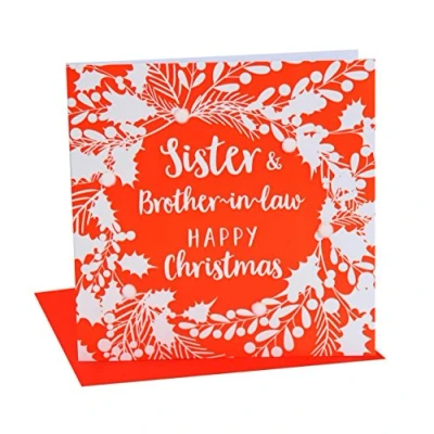 Claire Giles XP154"White Foliage On Red" Sister and Brother in Law Happy Christmas Card