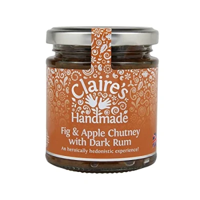 Claire's Handmade Fig & Apple Chutney with Dark Rum (200g) Great Taste Award Winning Luxurious Chutney, Perfectly pairs Cheese, Suitable for Vegetarian, Vegan Gluten Free Diets, GMO