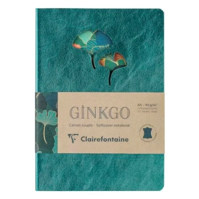 Clairefontaine 115949C Ginkgo, A5 leather paperback notebook 14.8x21 cm, 144 pages, ruled, ass.
