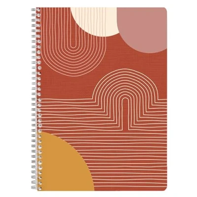 PATTERNS: The Terracotta collection plunges us into a soothing world where organic shapes and warm hues intertwine harmoniously. Shades of terracotta, ochre and beige create an enveloping, comforting ambience. COVER: Lightfast, solution-dyed Maya paper REINFORCED DOUBLE SPIRAL: allows full aperture, ideal for double-sided use of sheets FORMAT: Standard format notebook, 21x29.7cm, A4, 148 pages, ruled with margin, suitable for school, professional or family use. DOUCEUR DE L’ÉCRITURE : Papier Clairefontaine Ivoire Vélin Velouté 90 g/m² de qualité supérieure avec une opacité et une résistance remarquables. Certifié PEFC pour la gestion durable des forêts