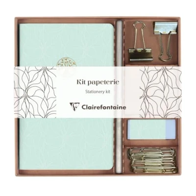Clairefontaine 116095C Inspire, Kit de Papeterie contenant un carnet 11x17 cm 64 Pages lignées, Crayon Papier, 2 pinces Doubles Clip, 10 Trombones et une gomme