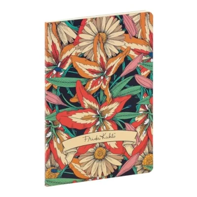 FRIDA KAHLO ALEATOIRE PATTERNS: Designs adorned with floral motifs and vibrant colours reflect FRIDA KAHLO's energy and passion, recalling the abundant nature that surrounded her and fed her imagination. FORMAT: A5 14.8x21cm notebook, 64 lined pages, easy to carry, suitable for professional or family use. COVER: Cardboard with satin lamination for maximum protection. AUTHENTICITY AND QUALITY: thread stitching for suppleness and perfect leaf retention over time. Hand-made using traditional methods GENTLE WRITING: Clairefontaine Ivoire Vélin Velouté 90 g/m² paper of superior quality with remarkable opacity and strength, PEFC-certified for sustainable forest management.