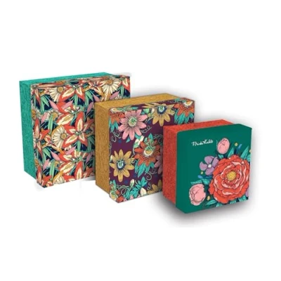 PRACTICAL: A set of 3 boxes perfect for storing and organising everything, at the office or in the privacy of your home. The lid allows you to stack the boxes in a cupboard or on a desk to optimize your storage space. 3 SIZES: 25x25x12cm, 20x20x11cm and 16x16x10cm MULTIFUNCTIONAL: The large box is ideal for storing photo albums, archives, correspondence, etc. Smaller boxes are useful for storing office accessories. Also suitable for gift boxes. FRIDA KAHLO DECOR: Designs adorned with floral motifs and vibrant Colours reflect FRIDA KAHLO's energy and passion, recalling the abundant nature that surrounded her and fed her imagination. SOLID : Rigid 2mm-thick cardboard, PEFC-certified for good forest management. A thin, satin-finish, waterproof protective film enhances durability.