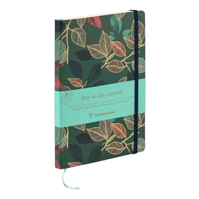 This beautiful DAY-TO-DAY JOURNAL is the ideal tool for organising and planning your day-to-day life, your goals and not forgetting anything, thanks to its 184 numbered pages and 8-page table of contents. FORMAT: 19 x 25 cm notebook, 192 Dot pages, easily transportable, suitable for professional or family use. RULING: The DOT rule is ideal for bullet journaling because its geometric grid of dots spaced 5 mm apart makes it easier to create sketches and illustrations. DECOR ALEATOIRE GAÏA BLEU: Discover in this collection the emblematic Ginkgo leaf combined with floral decorations in deep blue tones. The motifs are enhanced by golden touches, adding a note of refined elegance. GENTLE WRITING: Clairefontaine Ivoire Vélin Velouté 90 g/m² paper of superior quality with remarkable opacity and strength. PEFC-certified for sustainable forest management