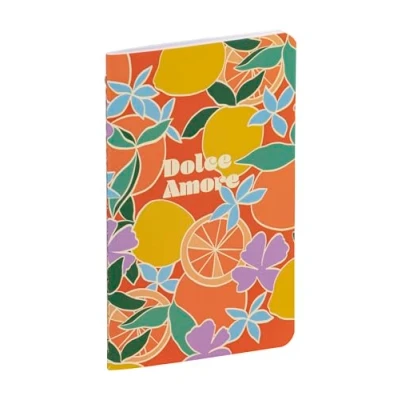 ALEATOIRES DOLCE AMORE PATTERNS: These floral, striped and citrus patterns, blending tangy lemons and vitamin-rich Colours, reflect a lively, contemporary ambience where every moment is a promise of dolce vita. POCKET FORMAT: 7.5x12cm notebook: ultra-practical, easy to carry, 48 plain pages, suitable for professional or family use. AUTHENTICITY AND QUALITY: thread stitching for suppleness and perfect leaf retention over time. Hand-made using traditional methods GENTLE WRITING: Clairefontaine Ivory Velvety Vellum 90 g/m² paper of superior quality with remarkable opacity and strength. ÉCOLOGIQUE : Certification PEFC, pour une gestion durable des forêts