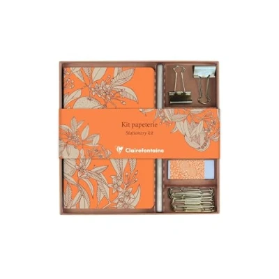 Clairefontaine 116350C Jardin des Sens, Kit de Papeterie contenant un carnet 11x17 cm 64 Pages lignées, Crayon Papier, 2 pinces Doubles Clip, 10 Trombones et une gomme