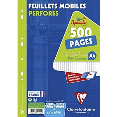 Clairefontaine 11792C Perforated Loose leaf Wallet A4 21x29.7 cm 500 Small Squares Pages White Paper 90 g Reusable