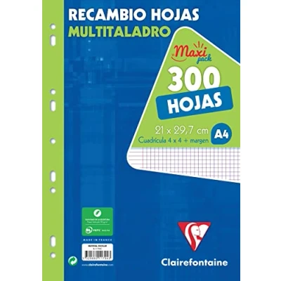 Clairefontaine 11794C A Pack of Perforated Loose Leaf Binders A4 21x29.7 cm 600 Quadruled Pages 4x4 mm White Paper 90 g