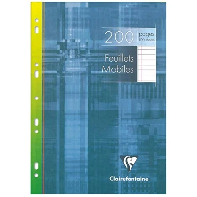 Clairefontaine 1756C Perforated Loose Leaf Sheets A4 21x29.7 cm 200 Lined Pages with Margin White Paper 90 g Reusable Wallet