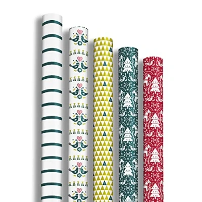 PATTERNS: Rolls of gift wrap with patterns: Christmas, Fir Trees, Horses, Red/Green, Birds. A pack of 12 assorted rolls to wrap your most beautiful attentions. If you have several gifts to make, it's ideal to match them in an original way. DIMENSIONS: 2m x 0.70m. Excellia paper, Weight: 80g. A 2m roll is the ideal length for your small or large gifts. ALL OCCASIONS: A gift wrap suitable for all occasions: your birthday parties, wedding parties, Mother's/Father's Day or the end of the year celebrations. Experience the pleasure of giving with our packaging rolls. SUPERIOR QUALITY: Clairefontaine paper is of high quality. It is solid when packed and resistant when handled. The Excellia range guarantees superior quality thanks to its 80g weight. MADE IN FRANCE: Clairefontaine paper is made in France in our factory located in the Auvergne Rhône Alpes region. CLAIREFONTAINE Rhodia is the gift wrapping specialist: our quality products meet your needs and requirements! Our wide range of gift packaging will allow you to enhance your most beautiful gifts throughout the year.