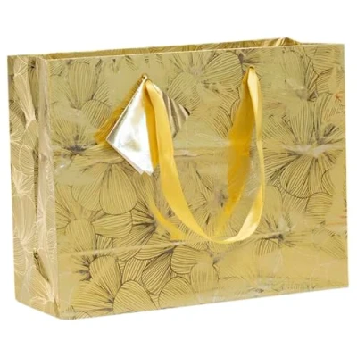 Clairefontaine 212850Cpack Un lot de 5 Sacs Cadeaux Premium Format shopping 32x13x24,5cm 170g Motif : Feuilles Argent, Floral Idéal pour Jeux Société, Puzzles, Vêtements
