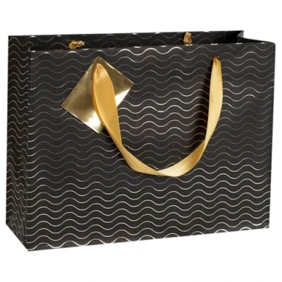 Clairefontaine 212860Cpack Un lot De 5 Sacs Cadeaux Premium Format shopping 32x13x24,5cm 170g Motif : Vagues or fond noir Idéal pour Jeux Société, Puzzles, Vêtements
