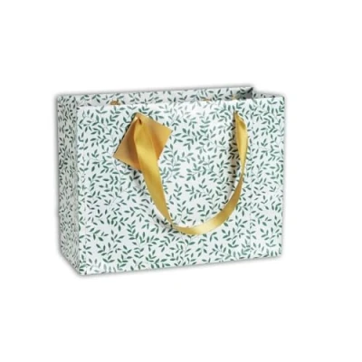 Clairefontaine 212886Cpack Un lot de 5 Sacs Cadeaux Premium Format Shopping 32x13x24,5 cm 210g Motif : Feuillage vert Emballage Cadeaux, idéal pour Jeux Société, Puzzles