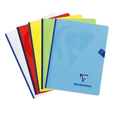 1 RANDOM COLOUR: blue, red, yellow, green or colourless. SMALL FORMAT: school size, fits easily into schoolbag TRANSPARENT POLYPRO COVER: handling-resistant, tear-proof and waterproof. No need for notebook protectors! COMFORT AND QUALITY: thread stitching for better hold and perfect flat opening SWEET WRITING: SUPERIOR QUALITY Clairefontaine White Velvet Vellum 90 g/m² paper with remarkable opacity and strength. TRICOLOR SETTING: red margins, purple lines and blue line spacing for improved writing comfort MADE IN FRANCE and PEFC CERTIFIED: for sustainable forest management