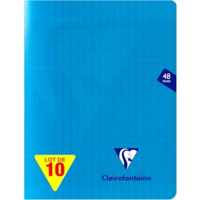 SET OF 10 BLUE NOTEBOOKS: ideal for school lists, schools and communities TRANSPARENT POLYPRO COVER: handling-resistant, tear-proof and waterproof. No need for notebook protectors! SMOOTH WRITING: SUPERIOR QUALITY 90 g Clairefontaine White Velvet Vellum paper with remarkable opacity and strength. TRICOLOR SETTING: red margin, purple lines and blue line spacing, for improved writing comfort. SMALL SIZE: school size, fits easily in the schoolbag MADE IN FRANCE and PEFC CERTIFIED: for sustainable forest management