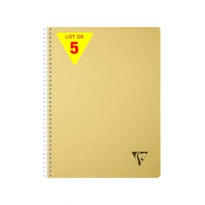 SET OF 5 STRAWBERRY YELLOW NOTEBOOKS, a natural, delicate colour to match your decor! Ideal for school lists, schools and communities. LARGE FORMAT: the standard, for a larger surface for expression THICK, TRANSLUCENT POLYPRO COVER: for high resistance to handling, with a grooved texture for an original feel and premium finish SWEET WRITING: SUPERIOR QUALITY Clairefontaine White Velvet Vellum 90 g/m² paper with remarkable opacity and strength. REINFORCED WHITE DOUBLE SPIRAL: allows full aperture, ideal for double-sided sheet use MADE IN FRANCE and PEFC CERTIFIED: for sustainable forest management