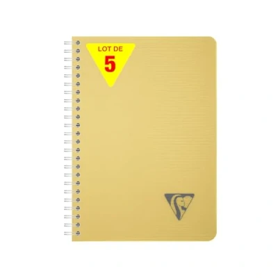 SET OF 5 STRAW YELLOW NOTEBOOKS, a natural, delicate colour to match your decor! Ideal for school lists, schools and communities. SMALL FORMAT: a must-have that's easy to transport THICK, TRANSLUCENT POLYPRO COVER: for high resistance to handling, with a grooved texture for an original feel and premium finish SWEET WRITING: SUPERIOR QUALITY Clairefontaine White Velvet Vellum 90 g/m² paper with remarkable opacity and strength. REINFORCED WHITE DOUBLE SPIRAL: allows full opening, ideal for use on both sides of sheets. MADE IN FRANCE and PEFC CERTIFIED: for sustainable forest management