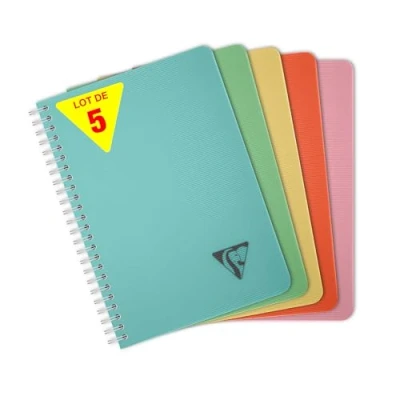 SET OF 5 NOTEBOOKS: ideal for school lists, schools and communities. ALTERNATIVE COLOURS: lagoon blue, sage green, straw yellow, madder red or petal pink. NATURAL AND DELIGHTFUL COLOURS to match your decor! THICK, TRANSLUCENT POLYPRO COVER: for great resistance to handling, with a grooved texture for an original feel and premium finish. SMALL FORMAT: a must-have that's easy to transport SWEET WRITING: SUPERIOR QUALITY Clairefontaine White Velvet Vellum 90 g/m² paper with remarkable opacity and strength. REINFORCED WHITE DOUBLE SPIRAL: allows full aperture, ideal for double-sided sheet use MADE IN FRANCE and PEFC CERTIFIED: for sustainable forest management