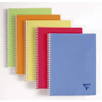 SET OF 5 NOTEBOOKS: ideal for school lists, schools and communities. MAXI FORMAT: school format, ideal for slipping in or sticking on A4 sheets (21x29.7 cm) distributed in class. THICK, TRANSLUCENT POLYPRO COVERING: for high resistance to handling, with a grooved texture for an original feel and premium finish. SMOOTH WRITING: 90g/m² Clairefontaine White Velvet Vellum paper of SUPERIOR QUALITY with remarkable opacity and strength. TRICOLOR SETTING: red margin, purple lines and blue line spacing, for greater writing comfort. REINFORCED WHITE DOUBLE SPIRAL: allows full aperture, ideal for double-sided sheet use 5 FRESH AND ACIDULAR COLOURS: to bring zest to everyday life! Lavender blue, fuchsia pink, apple green, orange and yellow. Random delivery. MADE IN FRANCE and PEFC CERTIFIED notebooks: for sustainable forest management.