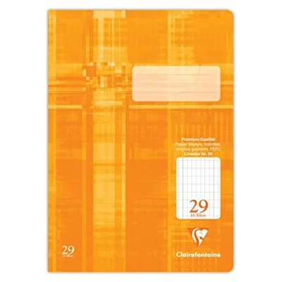 Clairefontaine 331029C One Pack of 25 Notebooks Ideal for School, DIN A4 21x29.7 cm, Ruled 29 Continuous 5x9mm Grid, 32 Pages, 90g, Orange, 1