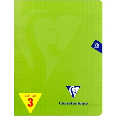 SET OF 3 GREEN NOTEBOOKS: ideal for school lists, schools and communities. SMALL SIZE: school size, easy to store in schoolbag TRANSPARENT POLYPRO COVER: handling-resistant, tear-proof and waterproof. No need for notebook protectors! STITCHED BINDING: the best value for money. Pages are bound together with staples. SMOOTH WRITING: SUPERIOR QUALITY 90 g Clairefontaine White Velvet Vellum paper with remarkable opacity and strength. TRICOLOURS SETTING: red margin, purple lines and blue line spacing, for improved writing comfort. MADE IN FRANCE and PEFC CERTIFIED: for sustainable forest management