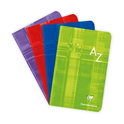1 RANDOM COLOUR INDEX BOOK: violet, klein blue, red or anise green. POCKET FORMAT: ultra-practical, take it everywhere with you! SWEET WRITING: SUPERIOR QUALITY Clairefontaine White Velvet Vellum 90 g/m² paper with remarkable opacity and strength. STITCHED BINDING: the best value for money. Pages are stapled together. COVER: washable laminated card for longer notebook life. ALPHABETICAL KEYS (A-Z): two-tone, plastic-coated for easier identification and greater durability MADE IN FRANCE and PEFC CERTIFIED: for sustainable forest management
