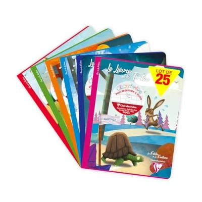 SET OF 25 NOTEBOOKS: ideal for school lists, schools and communities. FABLES AVAILABLE: The Raven and the Fox, The Cicada and the Ant, The Hare and the Tortoise, The Lion and the Rat, The Wolf and the Lamb and The Two Mules. SMALL FORMAT: school format, easy to store in the schoolbag. COVER: washable laminated card for longer notebook life. SWEET WRITING: SUPERIOR QUALITY Clairefontaine White Velvet Vellum 90 g/m² paper with remarkable opacity and strength. SPECIAL TRIColour RULER: for learning to write, large squares double line 3 mm vertical spacing MADE IN FRANCE and PEFC CERTIFIED: for sustainable forest management