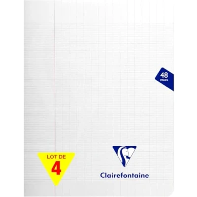 SET OF 4 COLOURLESS NOTEBOOKS: ideal for school lists, schools and communities. SMALL SIZE: school size, easy to store in schoolbag TRANSPARENT POLYPRO COVER: handling-resistant, tear-proof and waterproof. No need for notebook protectors! STITCHED BINDING: the best value for money. Pages are bound together with staples. SMOOTH WRITING: SUPERIOR QUALITY 90 g Clairefontaine White Velvet Vellum paper with remarkable opacity and strength. TRIColour SETTING: red margin, purple lines and blue line spacing, for improved writing comfort. MADE IN FRANCE and PEFC CERTIFIED: for sustainable forest management