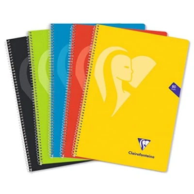 1 RANDOM COLOUR NOTEBOOK: black, green, blue, red or yellow TRANSPARENT POLYPRO COVER: handling-resistant, tear-proof and waterproof. No need for a notebook cover! SPIRAL BINDING: allows full opening, ideal for double-sided use of sheets SWEET WRITING: SUPERIOR QUALITY Clairefontaine White Velvet Vellum 90 g/m² paper with remarkable opacity and strength. MADE IN FRANCE and PEFC CERTIFIED: for sustainable forest management