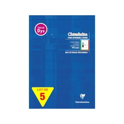 SET OF 5 KLEIN BLUE NOTEPADS: ideal for school lists, schools and communities. LARGE FORMAT: the standard, for a larger surface area. 4 COLOUR SETTINGS DYS SPECIAL: for learning to write, frame and line SKY - GRASS - EARTH - FIRE, line spacing 3 mm SMOOTH WRITING: SUPERIOR QUALITY Clairefontaine White Velvet Vellum 90 g/m² paper with remarkable opacity and strength. SHEETS: detachable for easy integration into a folder RIGID CARDBOARD BOTTOM: for comfortable note-taking, even without support. COVER: washable laminated card for longer notebook life PEFC CERTIFIED: for sustainable forest management