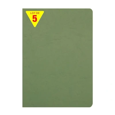 SET OF 5 GREEN NOTEBOOKS: ideal for school lists, schools and communities DURABLE AND RESISTANT: glossy card cover imitating the grain of leather, with a clean, authentic style! SWEET WRITING: SUPERIOR QUALITY Clairefontaine White Velvet Vellum 90 g/m² paper with remarkable opacity and strength. GRAND FORMAT: the standard, for a larger expression area MADE IN FRANCE and PEFC CERTIFIED: for sustainable forest management. 100% RECYCLABLE: plastic-free