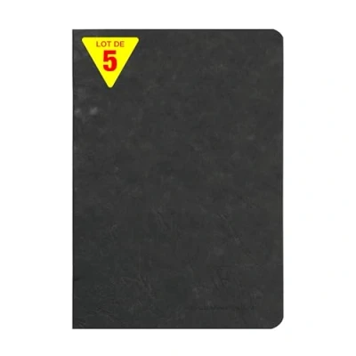 SET OF 5 BLACK NOTEBOOKS: ideal for school lists, schools and communities DURABLE AND RESISTANT: glossy card cover imitating the grain of leather, with a clean, authentic style! SWEET WRITING: SUPERIOR QUALITY Clairefontaine White Velvet Vellum 90 g/m² paper with remarkable opacity and strength. SMALL FORMAT: a must-have for easy transport MADE IN FRANCE and PEFC CERTIFIED: for sustainable forest management. 100% RECYCLABLE: plastic-free