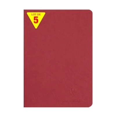 SET OF 5 RED NOTEBOOKS: ideal for school lists, schools and communities DURABLE AND RESISTANT: glossy card cover imitating the grain of leather, with a clean, authentic style! SWEET WRITING: SUPERIOR QUALITY Clairefontaine White Velvet Vellum 90 g/m² paper with remarkable opacity and strength. SMALL FORMAT: a must-have for easy transport MADE IN FRANCE and PEFC CERTIFIED: for sustainable forest management. 100% RECYCLABLE: plastic-free